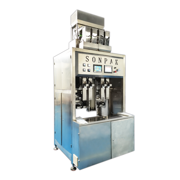 適用于五谷雜糧等形狀均勻、流動性較好的顆粒物料的真空整形包裝。操作簡單、包裝速度快,有效節約生產成本,能自動稱重、充填、整形抽真空、封口、成品輸出。